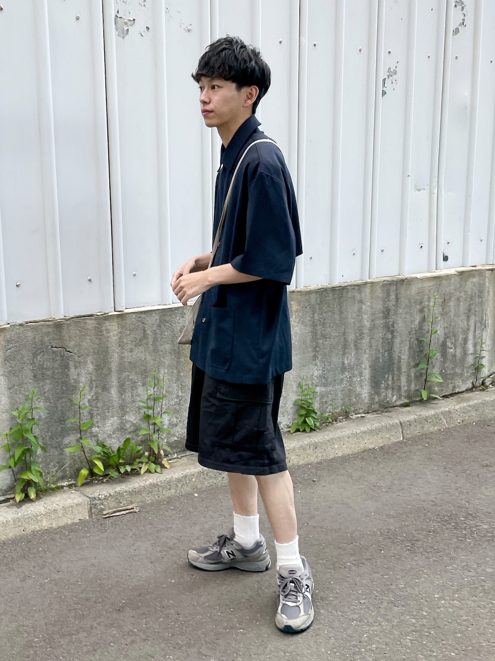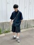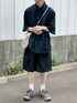 いつも見て頂きありがとうございます! ネイビーのシャツに 黒のカーゴハーフパンツを 合わせた夏の大人カジュアルコーデ!