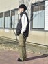たいがのダウンベスト「MULTI POCKET PADDING VEST / マルチポケット中綿ベスト」を使ったコーディネート
