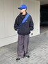 いつも見て頂きありがとうございます! マウンテンパーカーにグレーの ナイロンカーゴパンツを合わせた カジュアルコーデ! ブルーのキャップとバッグで コーデにアクセントを入れました!