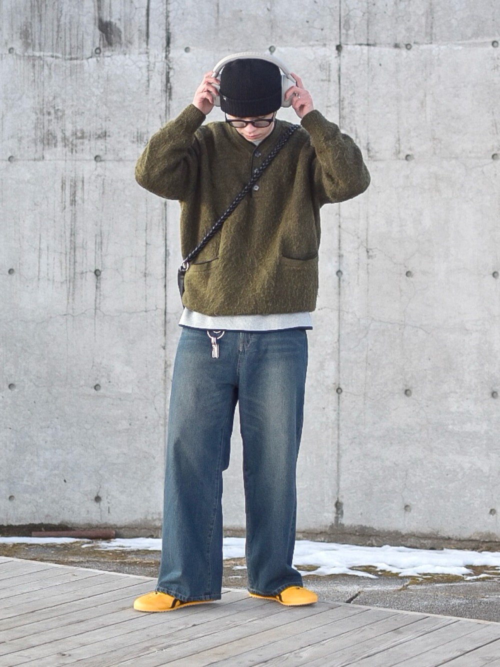 たいがのデニムパンツ「OVER DYED WIDE DENIM PANTS /オーバーダイワイドデニムパンツ」を使ったコーディネート