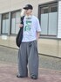 たいがのTシャツ/カットソー「【FFEIN(フェイン)】アートデザインショート丈Tシャツ / Tシャツ 短丈 クルーネック 半袖」を使ったコーディネート