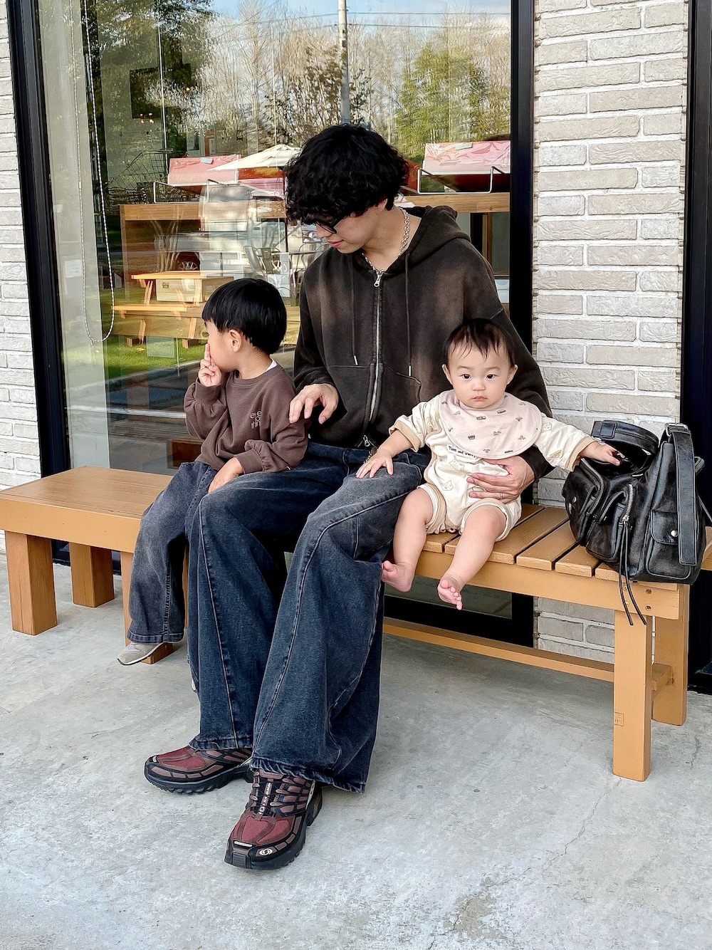 久しぶりの親子写真📸 長男とはブラウン×ブラックデニムで 合わせたよー!! Chocoさんのスウェットが良すぎた!