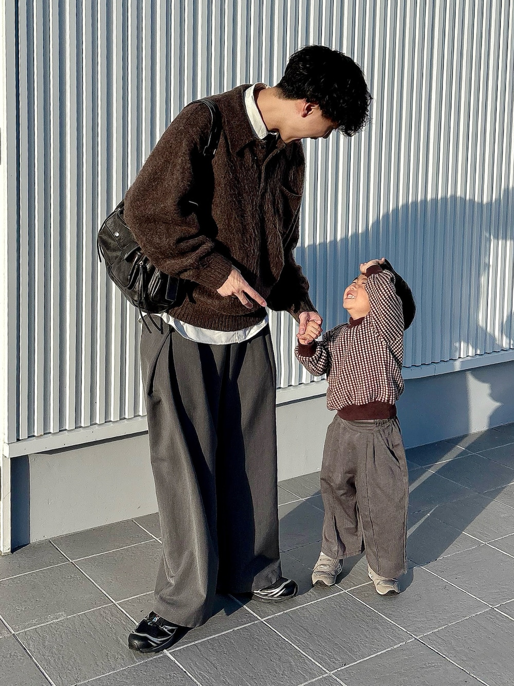 ブラウンニットとスラックスで リンクコーデ!