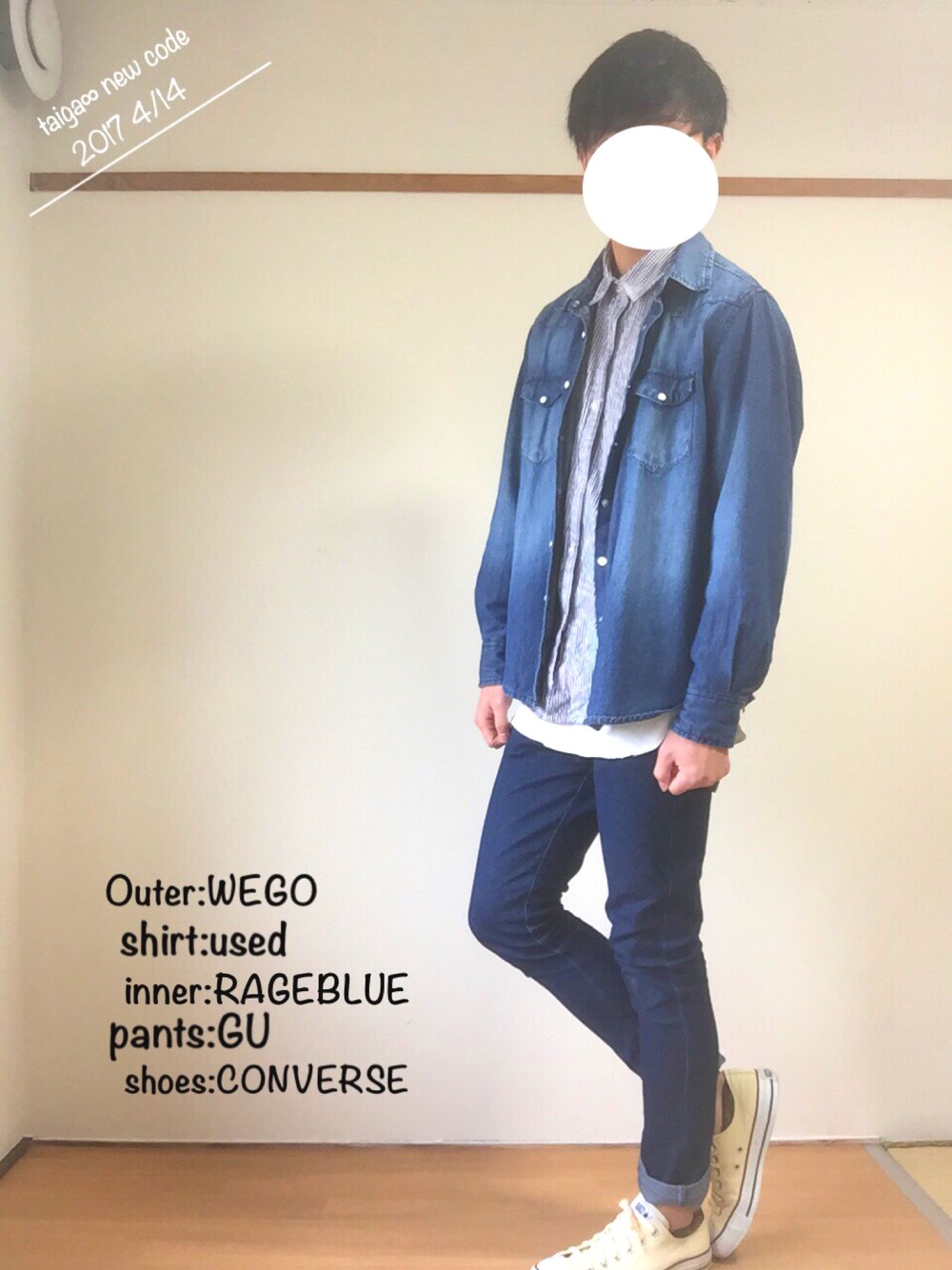 ✨デニムオンデニムコーデ✨ こんばんは!いつもいつも いいね、お気に入り、ありがとうございます!! 昨日また仕様が変わったらしく、なんと34位 ランクインしてました!(笑)びっくりした。😱 ほんとに嬉しいですね💭💭 今日のコーデはデニムシャツ×見えずらいけど古着のストライプのシャツ×デニムのスキニーパンツを使ったデニムオンデニムコーデですー!👍 古着のストライプのシャツ300円で買いました笑 なのでプチプラでもあるかな?😑😑 ちゃんとした新品のストライプのシャツ欲しい! 革靴使っても良かったのですが 綺麗めすぎるかなと思って、CONVERSEのスニーカーを使いました!久しぶりに履いた💭💭 今日のコーデいいと思ってくれたら いいね、お気に入り、コメント、フォロー よろしくお願いします!!👍 フォロワーさんも650人になったので700人まで あと半分!✨✨ 明日も更新するので見てください!! 四月は毎日更新します!(多分笑) それではまた!!👋👋 Twitter:@crewtiger0118 《サイズ表》 Outer M shirt M inner M pants S shoes 26.5