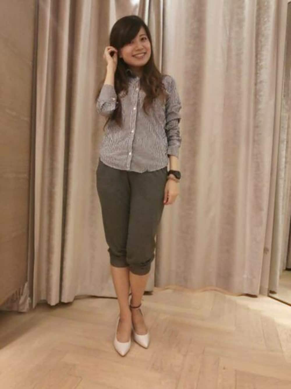 無造作のシワ感のチェックシャツに ジャージパンツとあわせると、 動きやすくて爽やかです♪ 白いパンプスを履くと、 カジュアルすぎず、足にもきれいに見せる、 大人のコーディネートです!