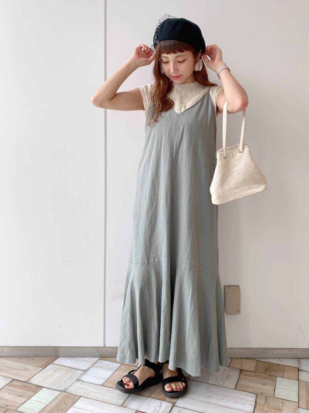 asuka(Crisp)のワンピース「ウォッシャブルリネンブレンドキャミワンピース 【AUNT MARIE’S】」を使ったコーディネート