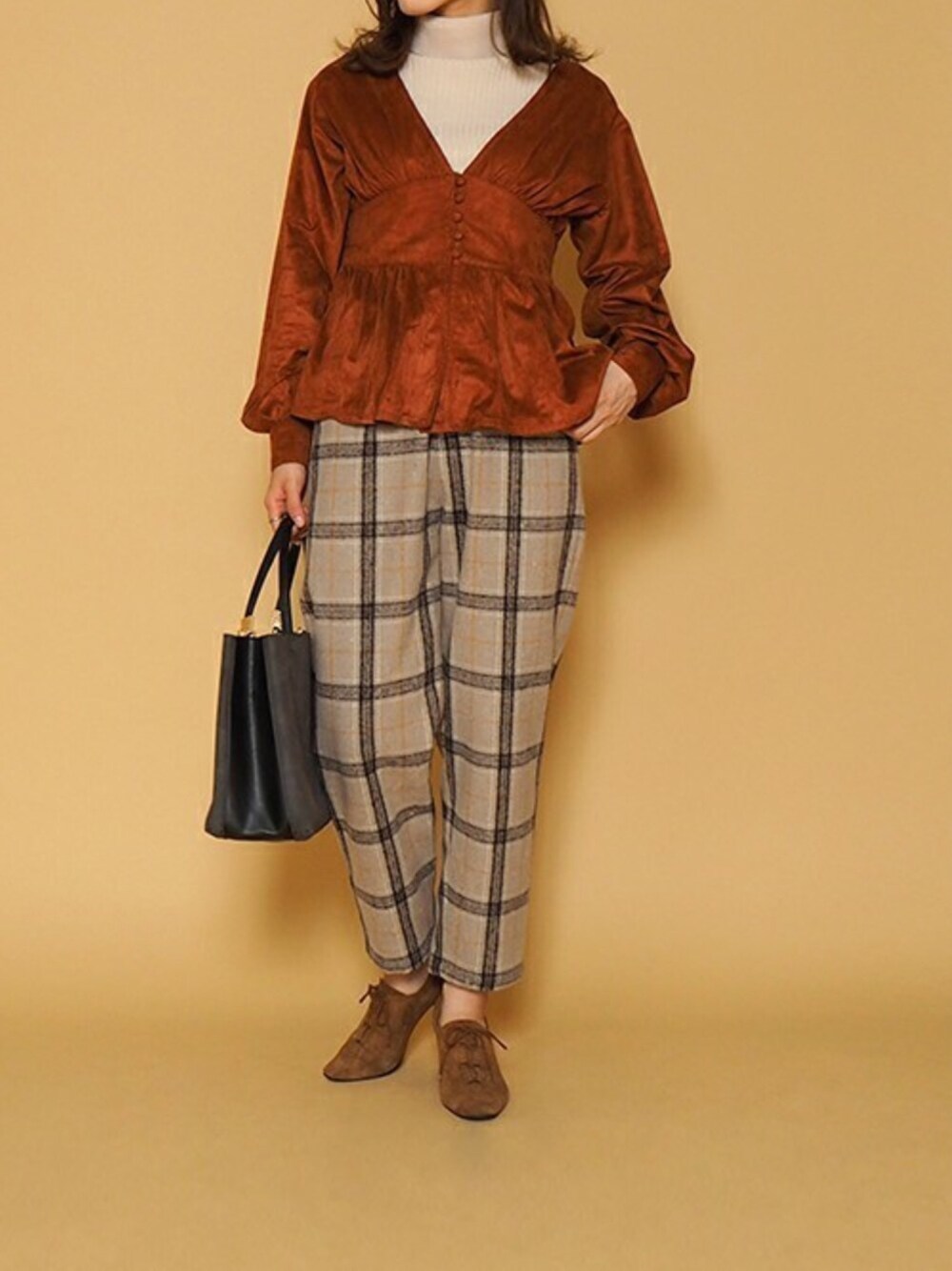 SET FAIR対象商品! 女性らしいシルエットのブラウスと チェックパンツの組み合わせ。 ------------ Instagram @crisp_official Twitter @crisp_official