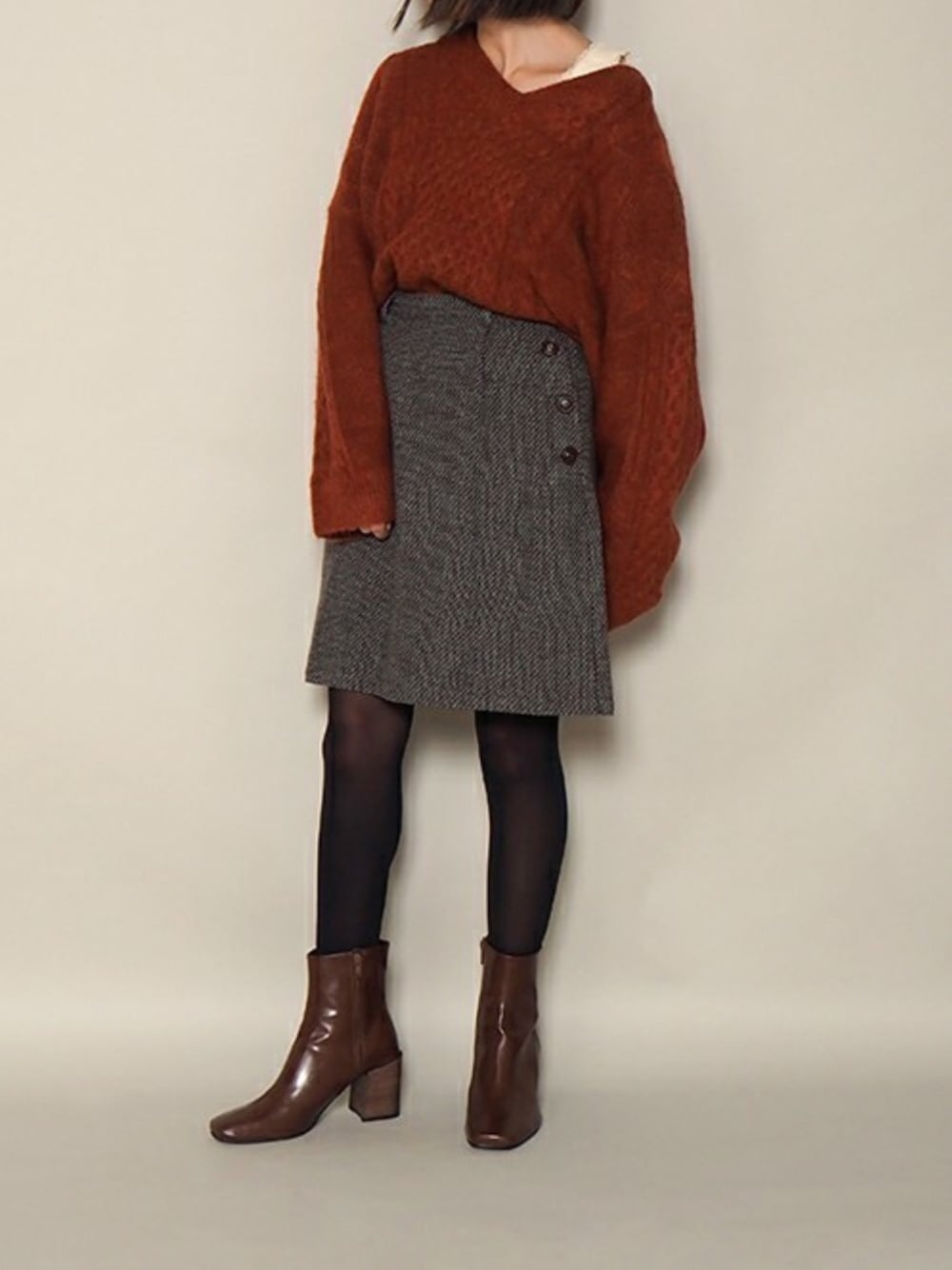 ゆるっとしたニットと丁度いい丈感のスカート。 落ち着いた色味で大人っぽく着られます。 ------------ Instagram @crisp_official Twitter @crisp_official