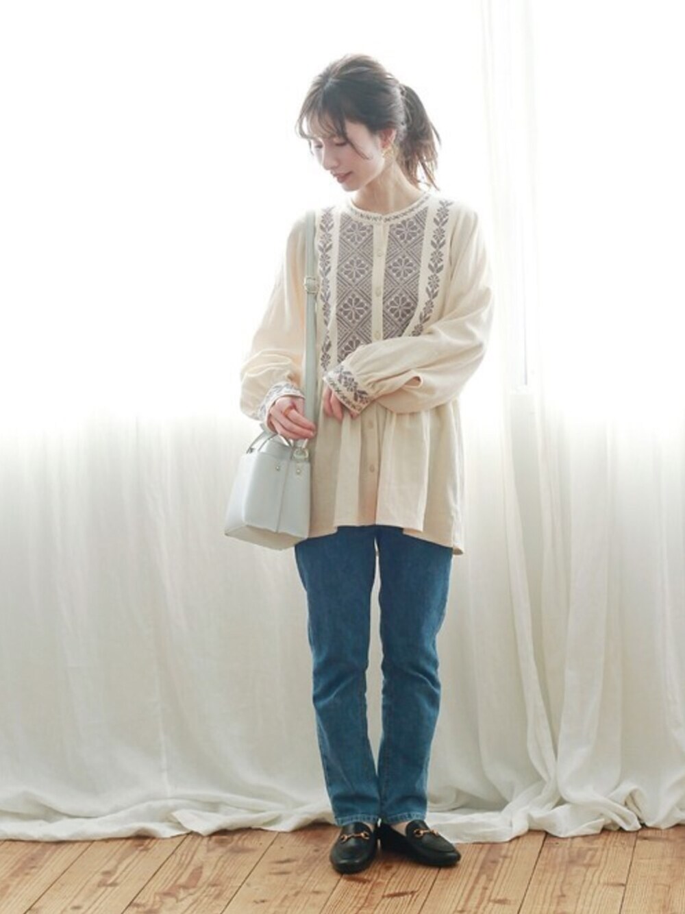 胸元の刺繍が存在感のあるチュニック。 スキニーパンツと合わせてすっきりとした着こなしに。 ------------ Instagram @crisp_official Twitter @crisp_official
