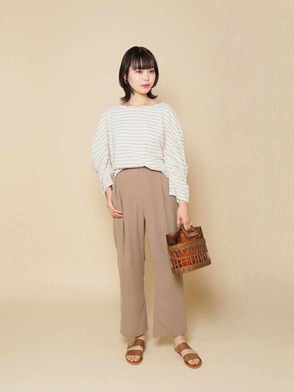 トレンドのタックパンツを春夏定番のボーダートップスと合わせました。 カジュアルながらも、ブラウンの色味でまとめ大人っぽい印象に。 ------------ Instagram @crisp_official Twitter @crisp_official