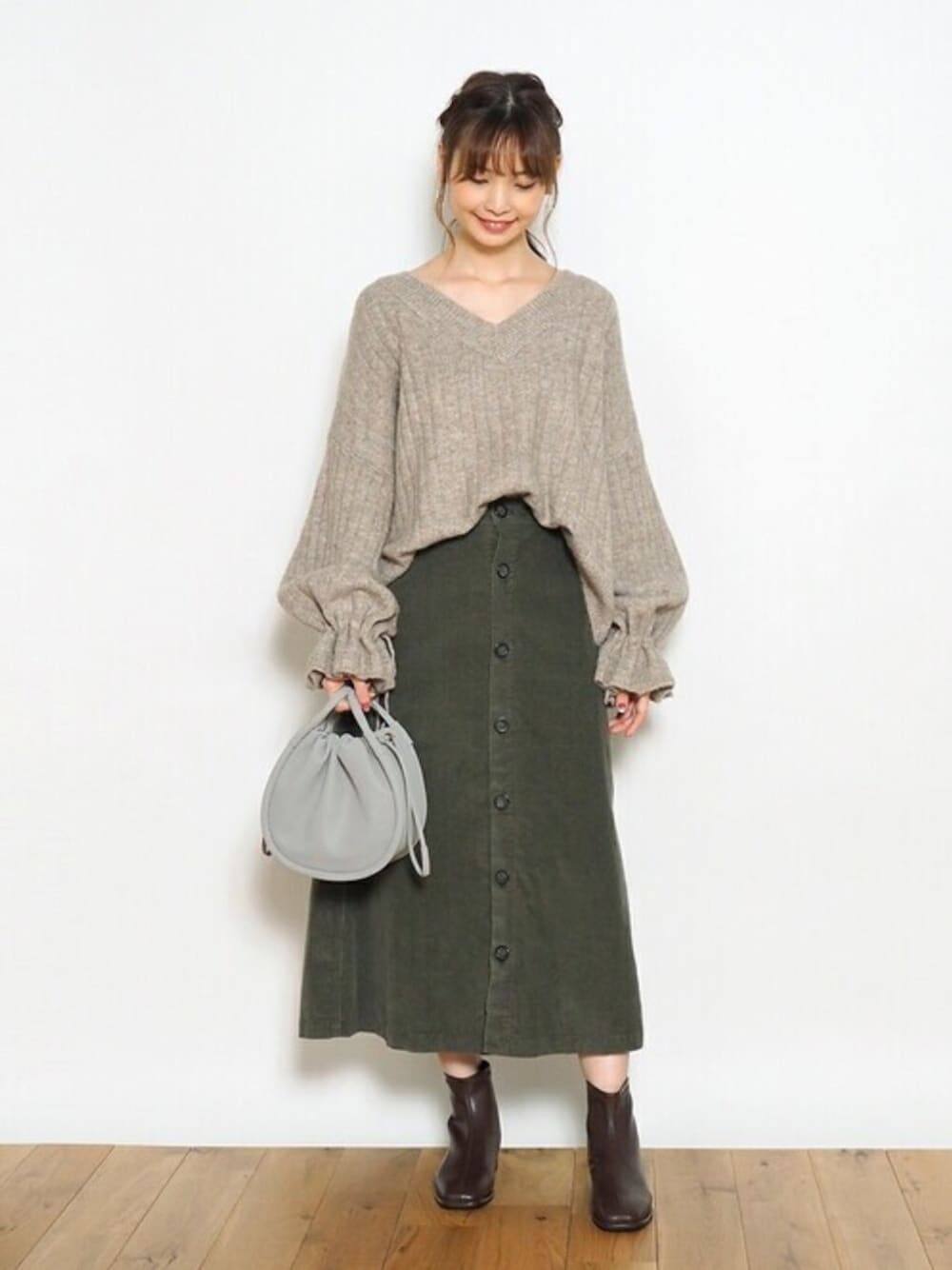 秋冬に大活躍のコーデュロイ素材のスカート。 Vネックニットと合わせてすっきりとした印象に。 ------------ Instagram @crisp_official Twitter @crisp_official