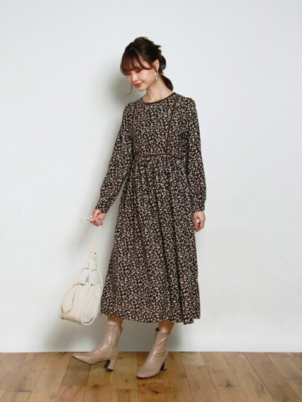 Crispのワンピース「カームフラワーワンピース」を使ったコーディネート