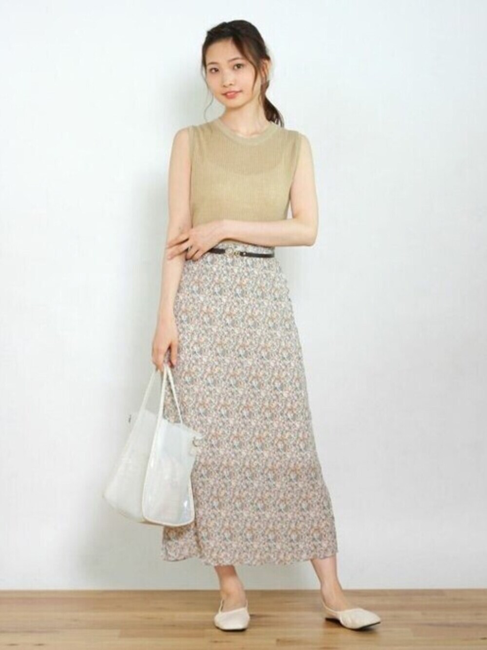 Crispのワンピース「【WEB限定】サマーニットタンク×フラワースカートSET」を使ったコーディネート