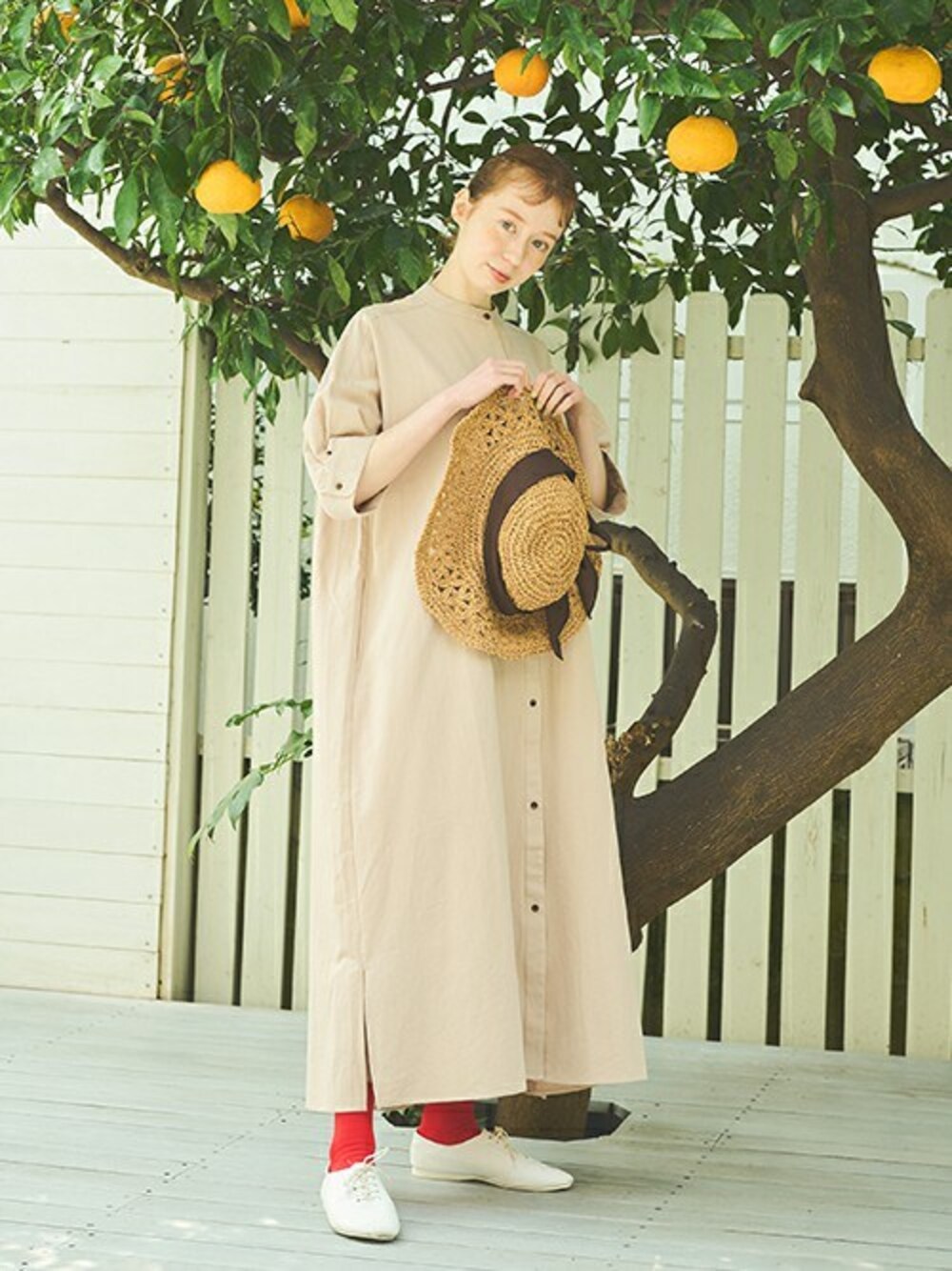 Crispのシャツワンピース「バンドカラーシャツワンピース[c2R3250]」を使ったコーディネート