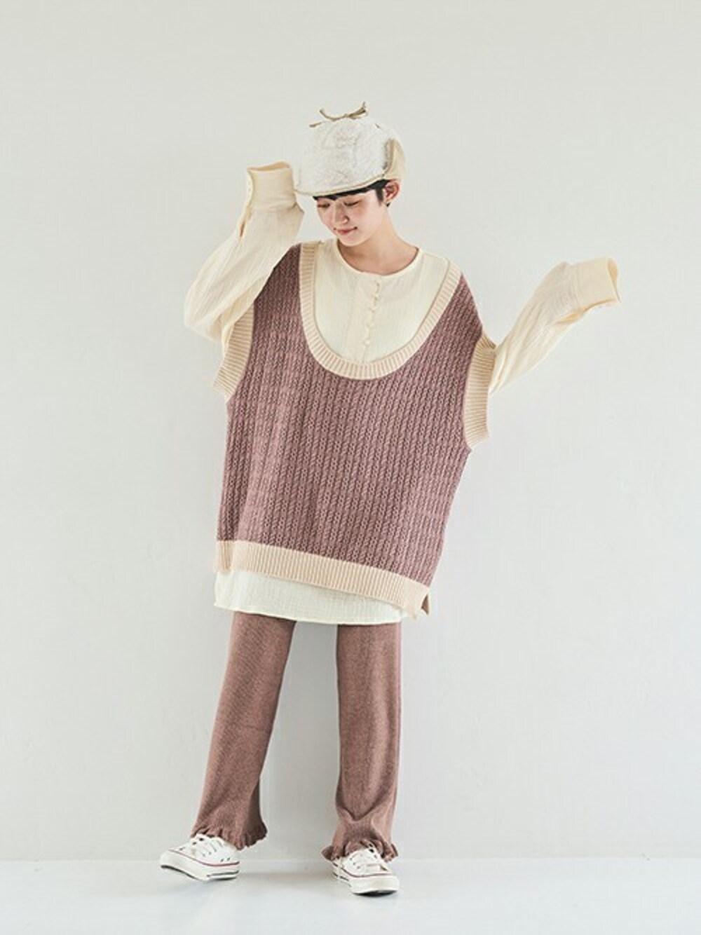 オーバーサイズでこなれた印象のニットベスト。 ニットパンツ合わせでシーズンムード高まるスタイルに。 ------------ Instagram @crisp_official Twitter @crisp_official