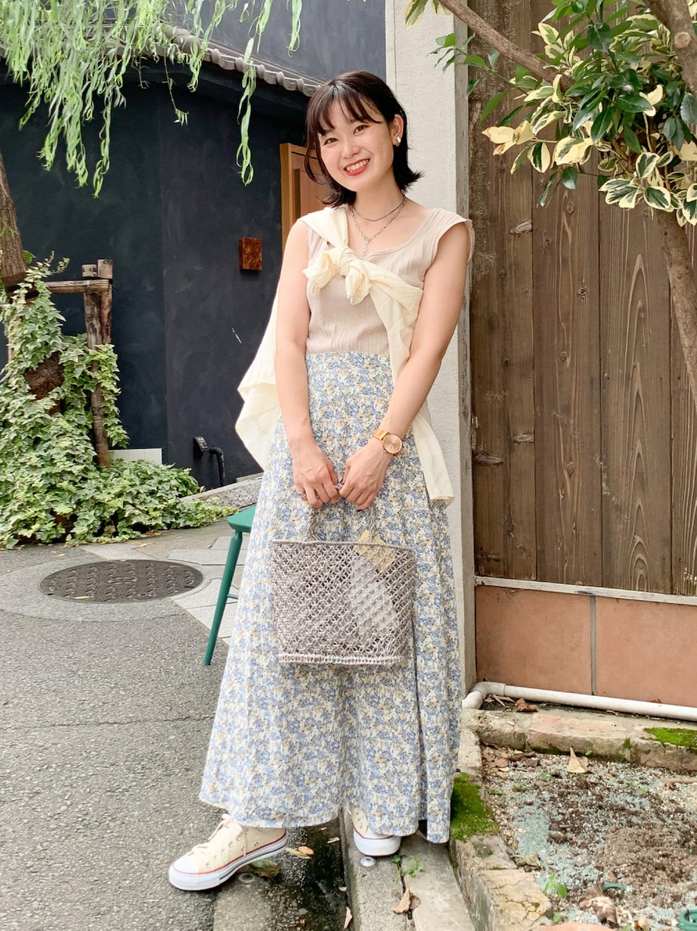 お気に入りコーデ♥ ノースリーブにたすき掛けで一気にトレンドライクになります☺️ 花柄スカートの形もきれいすぎで めちゃめちゃおすすめです🥰