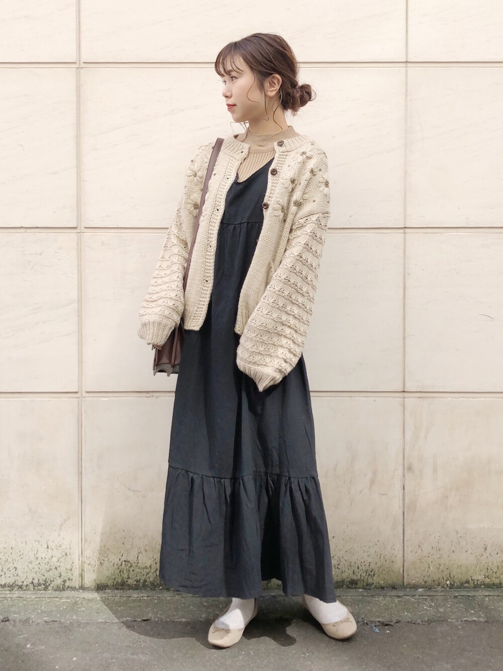 黒ワンピ×花刺繍カーディガン❤︎ instagram▷@s.ne_ne_ ご覧頂きありがとうございます✨ 黒のティアードワンピにニットカーディガンを合わせた 大人かわいいコーデ♡ インナーはベージュのハイネックニットで 暖かい着こなしに☺️♩