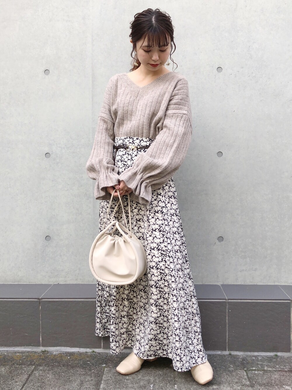 ねねのニット/セーター「Vネックリボンニット」を使ったコーディネート