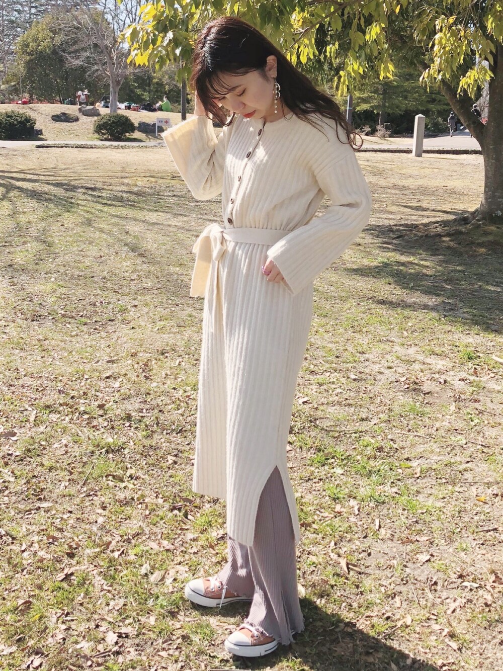 ねねのワンピース「ヘンリーリブニットワンピース」を使ったコーディネート