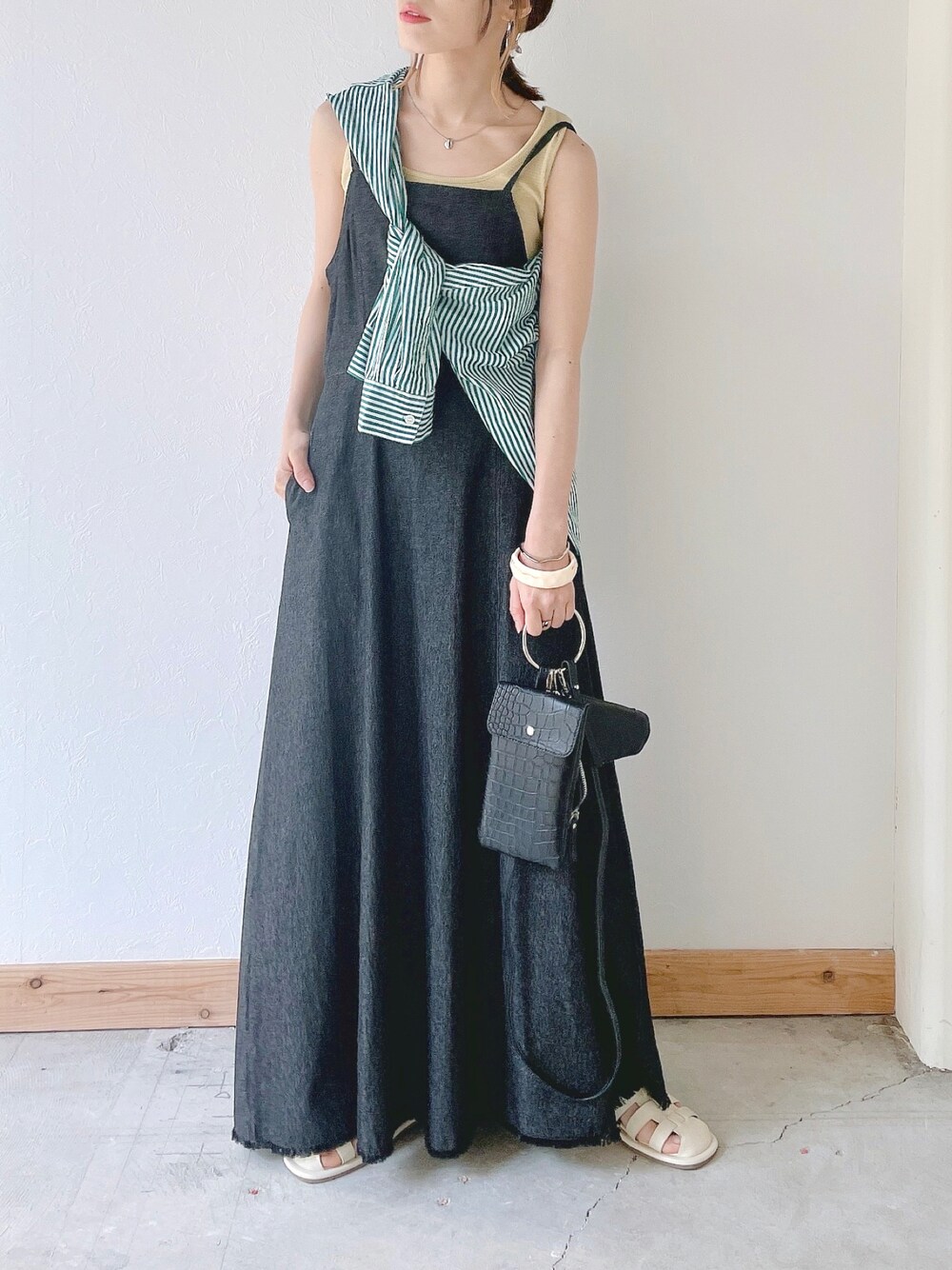 kaoru(Crisp)のワンピース「デニムフレアキャミワンピース」を使ったコーディネート