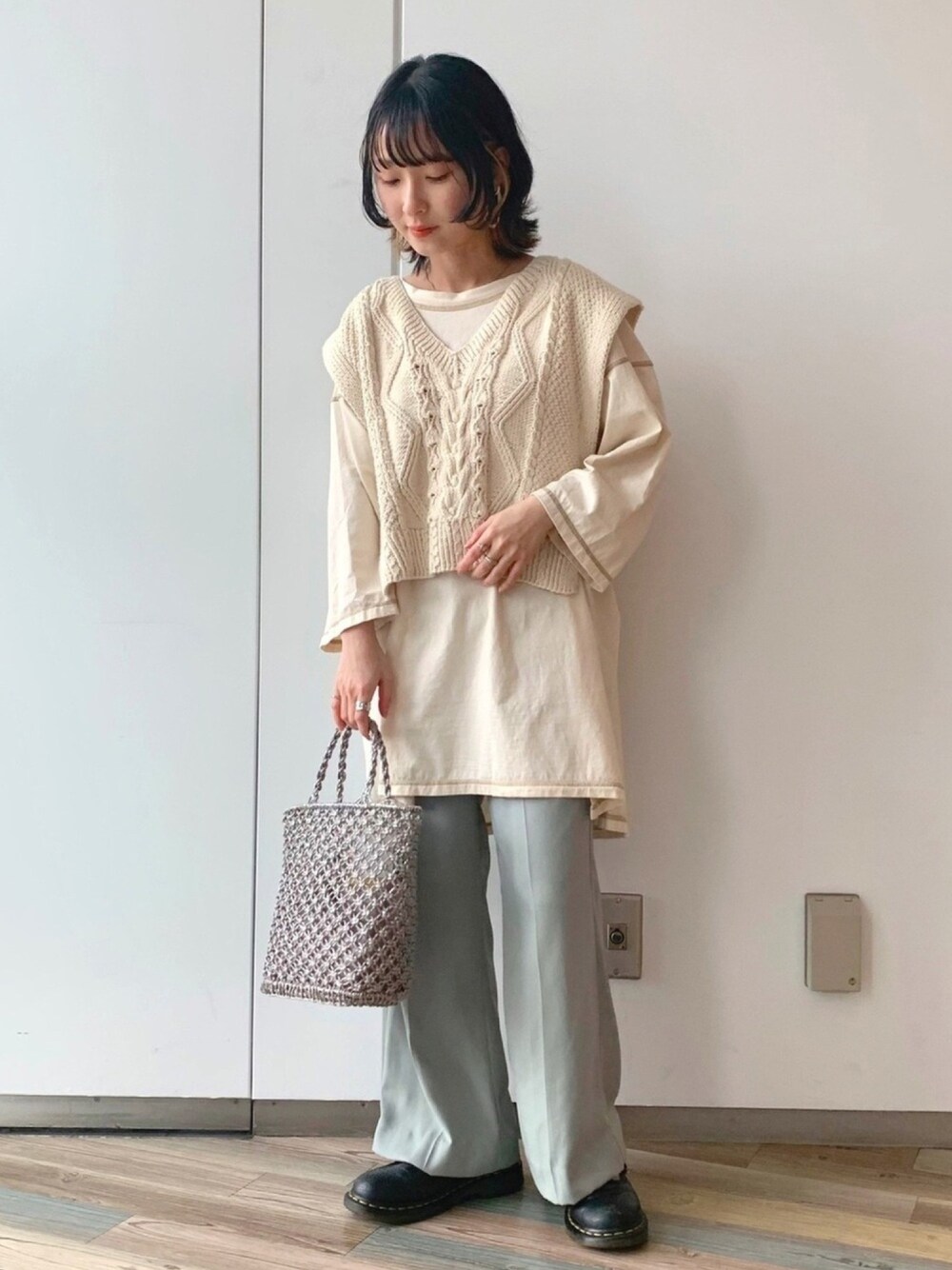 azusaのベスト「ネパールハンドニット アラン編ベスト」を使ったコーディネート