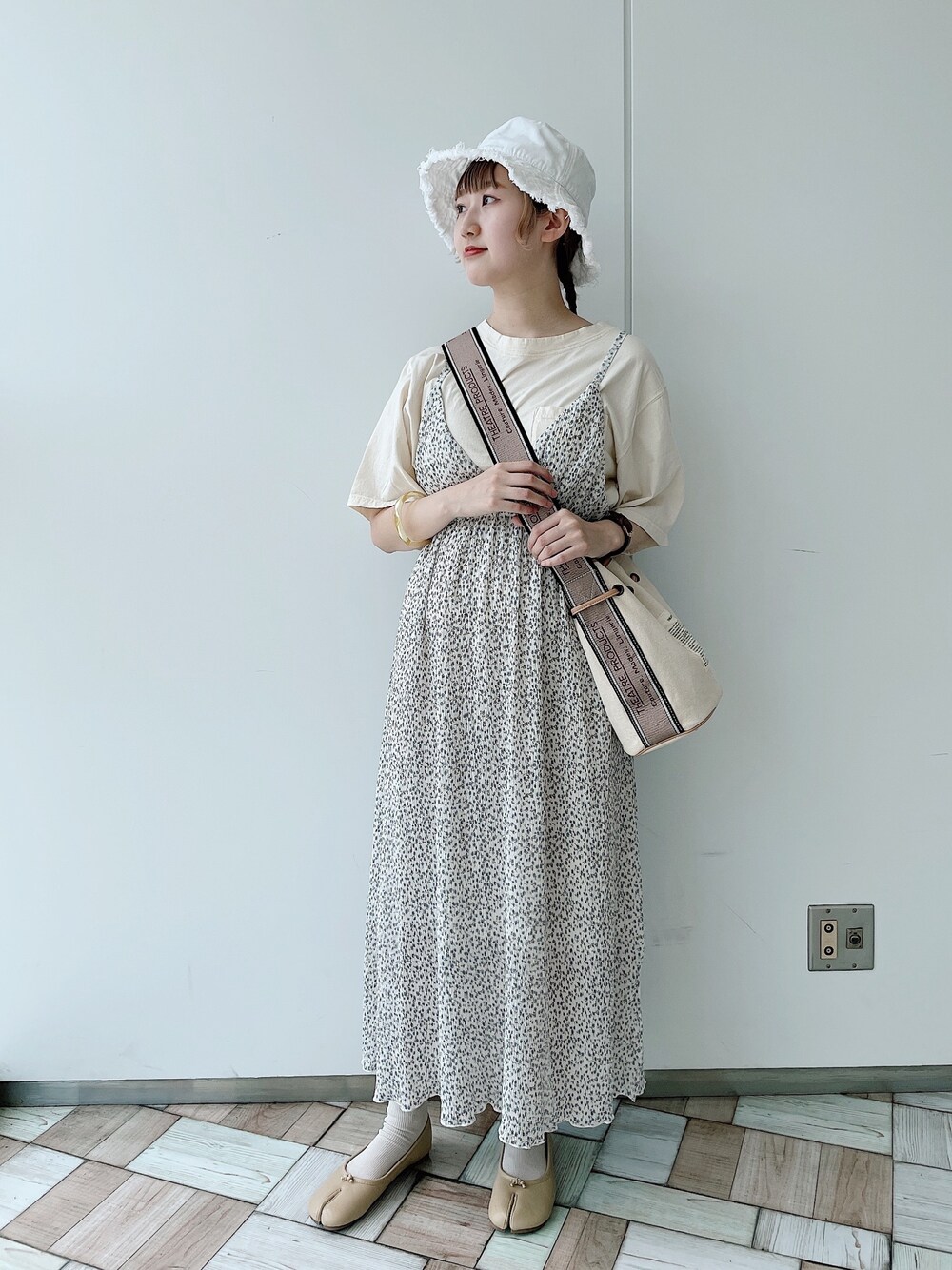 大人気のキャミワンピ🤍 バケハと合わせてカジュアルに🐶 Instagram ➪ @nabe__y14