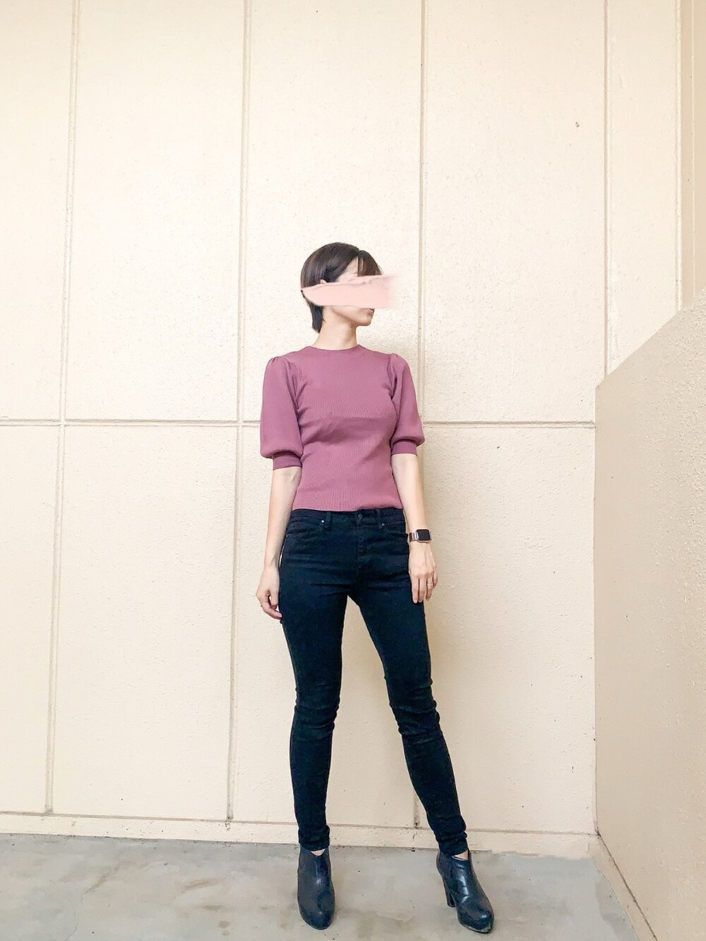 涼しくなってきたので 5分袖ニット𓃺𓈒𓏸 ショート丈で 脚長効果◎◎◎