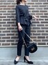 Cieのスーツセット「【手洗い可能/セットアップ】ウエスト切替ペプラムトップス・テーパードパンツ・サッシュベルト 3点セット」を使ったコーディネート