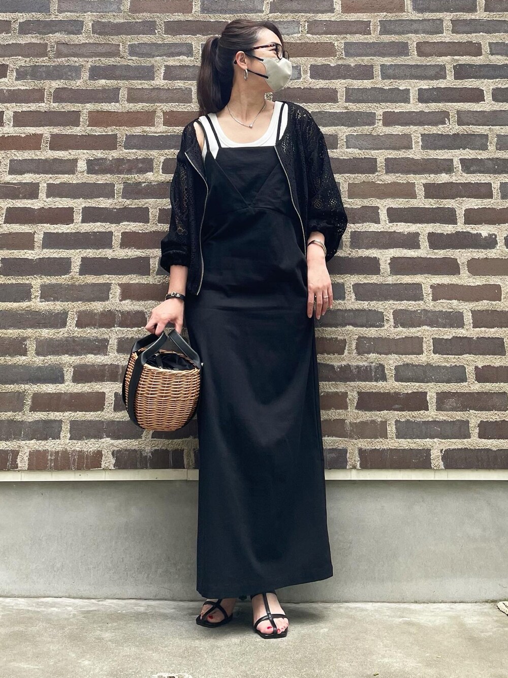 おはようございます☁️ いつもご覧いただきありがとうございます! #いつかのコーデ です🖤 去年の @styledoor_official の キャミワンピ🖤 胸元のデザインや女性らしいラインがお気に入りで、今年も活躍しそう🖤 アウターには @grshimamura の 今期個人的にすごく注目アイテムのパネル柄レース🖤のジャケットを🖤ホワイトと迷ったけど、 どうしてもホワイトだと可愛くなるから、ブラックに🖤 ネックレスは @iels_official の ハートのモチーフがマグネットになってる脱着簡単な最近のお気に入り🩶 安定のやっぱりモノトーンコーデになっちゃいます🖤🤍 tanktop @uniqlo_jp one-piece @styledoor_official jacket @grshimamura sandal @vivian_collection_official bag @grshimamura necklace @iels_official #大人コーデ#大人シンプル#シンプルコーデ#ロングワンピース#キャミワンピ#ママコーデ#アラフォー#アラフォーコーデ#サンダル#vivianコーデ#vivianshoes#モノトーン#モノトーンコーデ#しまむら購入品#しまパト#しまパト戦利品#イエルズ#ielsネックレス#ハートネックレス