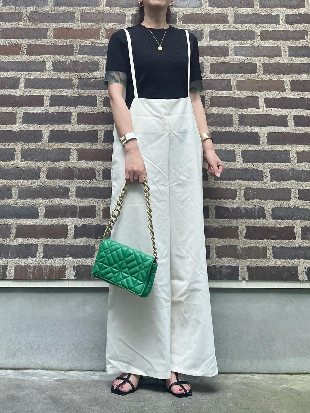 おはようございます🌞 いつもご覧いただきありがとうございます🙇♀️ @geera__official の袖口シアーリブトップス🖤new in🖤 リブニットトップス欲しかったんだけど、 首の空き具合やフィット感、素材を見てるとなかなかいいものに会えてなかったんだけど、 コレ、素材も春夏素材でサラッとしたニットだし、 袖口が何と初めて出会ったデザインでラメシアー素材な上、 裾のみグリーンのライン入り💚 シャレすぎてないか?😍 かなりの一目惚れ🤩 そりゃ、こないだゲットした 同じく @geera__official の サロペットワイドパンツ🤍 とぜーったいかわいいじゃーんってコーデしてみました🤍🖤 袖口のグリーンと合わせて、 小物のバッグもグリーンにしてみたよ💚 バッグのチェーンに合わせて、 久しぶりに、アクセサリーも ゴールド💛 ⚫️袖口シアーリブトップス🤍 商品番号🔍 207869 #GeeRA #geera_ootd #ジーラ#大人コーデ#プチプラコーデ#アラフォー#アラフォーコーデ#サロペット#サロペットワイドパンツ#ワイドパンツ#リブニット#リブトップス#袖口シアーリブトップス