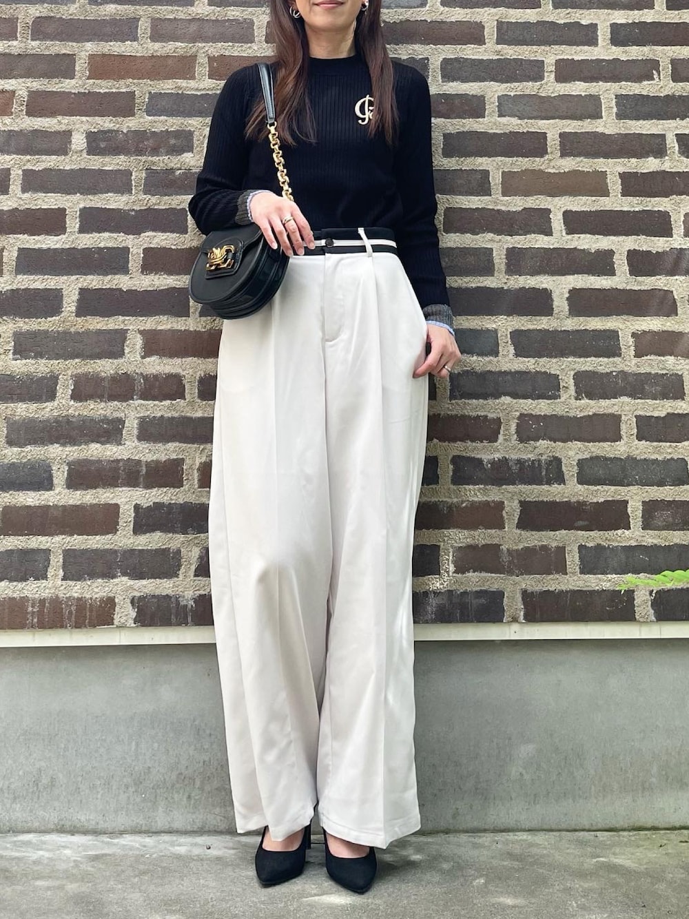 こんにちは🌞 いつもご覧いただきありがとうございます😊 @geera__official の袖口シアーハイネックリブニットトップス🖤new in🖤 秋冬になるとひと癖あるリブニットトップスが欲しくなるんだけど、夏用の半袖リブニットの生地と違ってもちもちした着心地で柔らかな印象😌 袖口のシアーが今回はブラック✖️ブルー🫐でかなりアクセントで可愛い😍 少しボトルネックになってるとこも、秋冬らしいデザインになってるよ🖤 今回はシンプルに大人モノトーンコーデにしてみたけど、サロペットに合わせたり、デニムコーデにしたり、スタイリングの幅広いからこーゆーアイテムは1枚持っておきたい🖤 最近シンプルなトップスやワンピの時にブローチつけるのハマってる⭐️ ⚫️袖口シアーハイネックリブニットトップス🤍 商品番号🔍 208182 @zozotown で @geera__official のアイテムかなりあるからチェックしてみてね☑️ #GeeRA #geera_ootd #ジーラ#大人コーデ#プチプラコーデ#アラフォー#アラフォーコーデ#40代コーデ#40代ファッション#ワイドパンツ#リブニット#リブトップス#袖口シアーハイネックリブニットトップス#モノトーン#モノトーンコーデ#リブニット