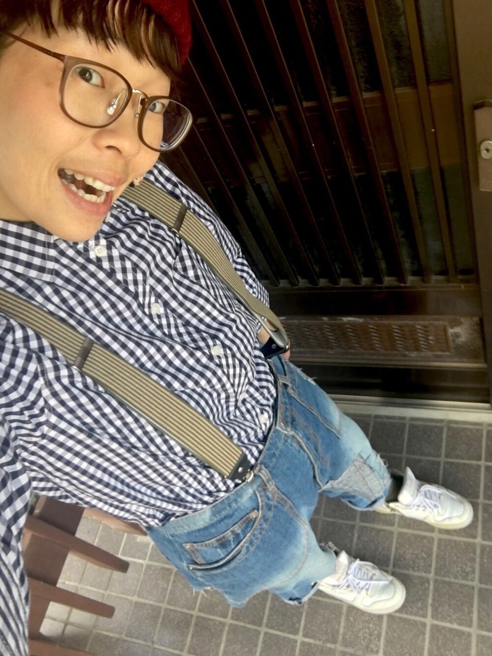 いつかの出かけコーデ サスペンダーだいすき はまってます デニムサルエルも最高‼️