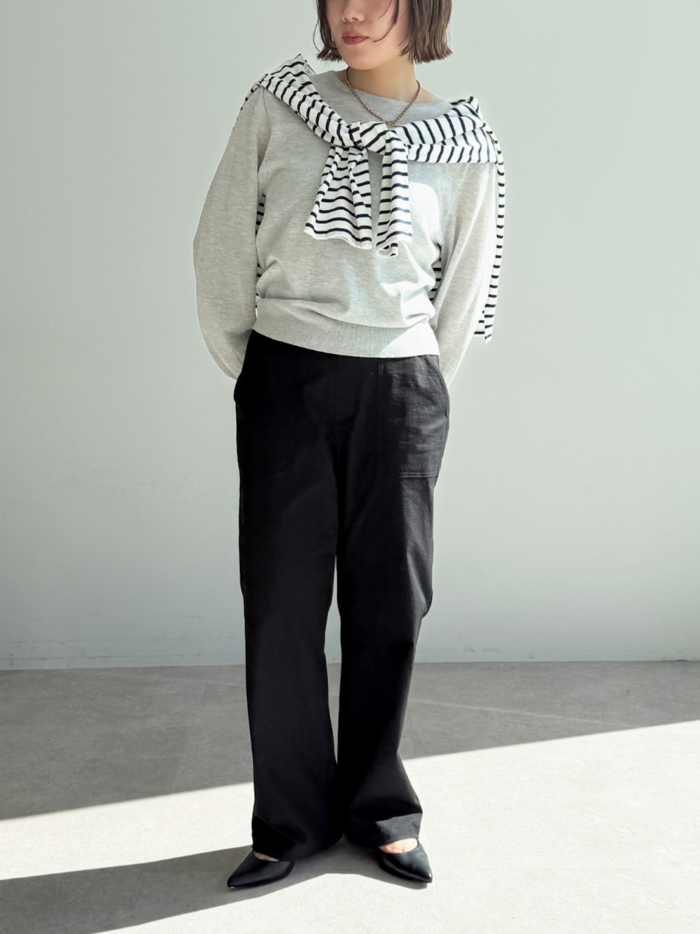 ECスタッフ(cross marcheメイン)のTシャツ/カットソー「エブ楽 オーガニックコットンボーダートップス【CF/クロスファンクション】」を使ったコーディネート