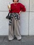 ECスタッフ(cross marcheメイン)のスラックス「《シワになりにくい》セットアップ対応 サマ美え ツータックギャザーワイドパンツ【CROSS FUNCTION/クロスファンクション】」を使ったコーディネート