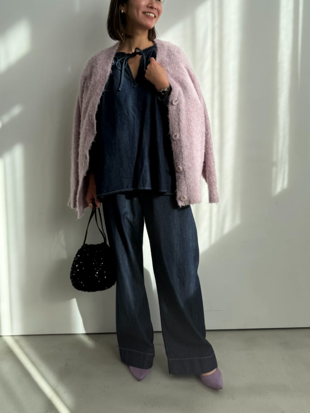 ECスタッフ(cross marcheメイン)のデニムパンツ「《撥水》FRESH DENIM デニムワイドバギーパンツ【CROSS FUNCTION/クロスファンクション】」を使ったコーディネート