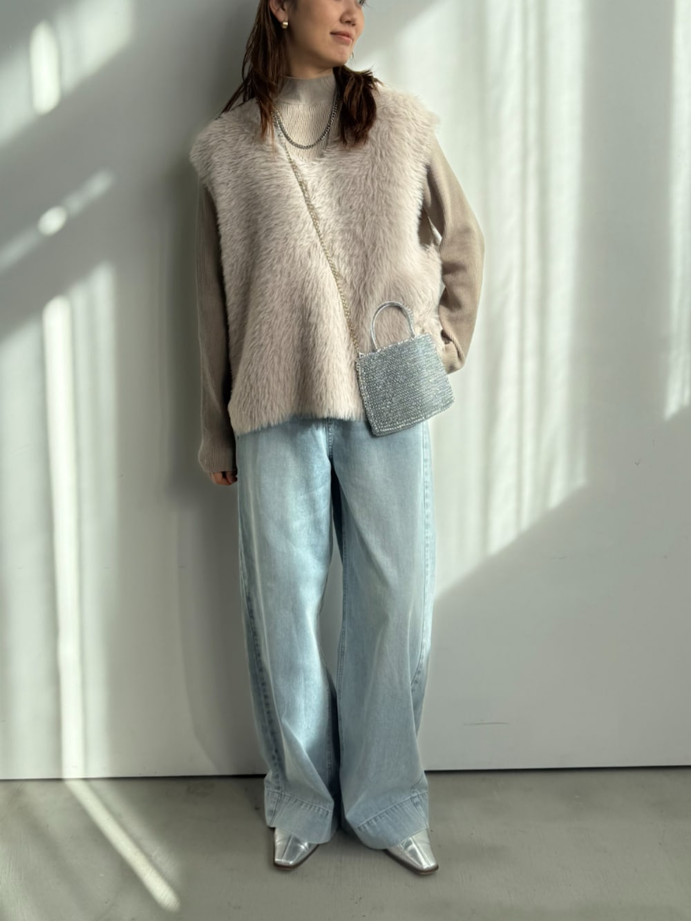 ECスタッフ(cross marcheメイン)のニット/セーター「《洗える》2点セット エブ楽 フェザーニットベスト&リブニット【CROSS FUNCTION/クロスファンクション】」を使ったコーディネート