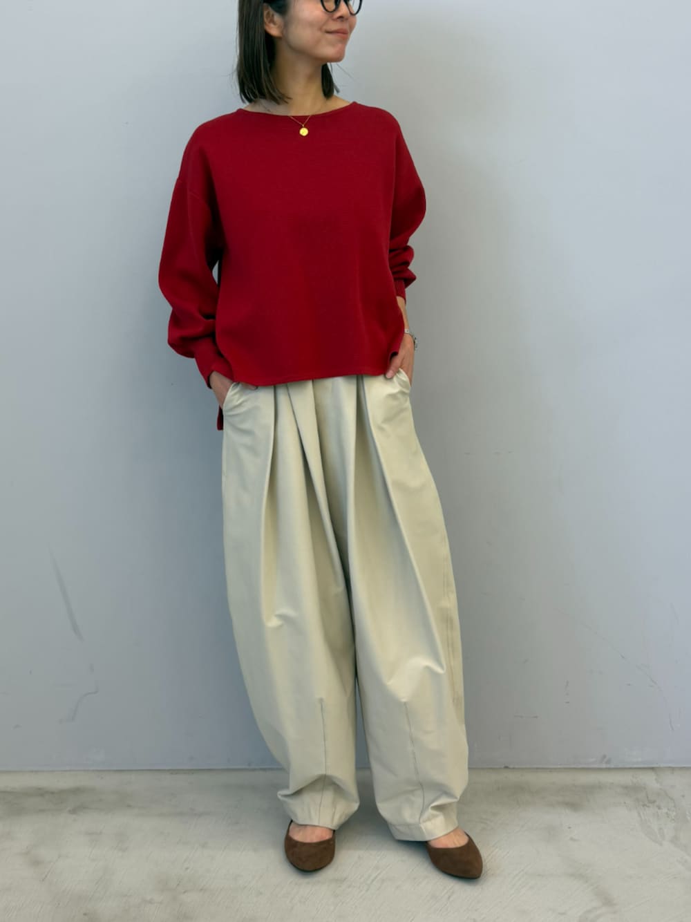 ECスタッフ(cross marcheメイン)のニット/セーター「《洗える・タンブル乾燥可》サマ美え スウェットライクバルーンスリーブニット【CROSS FUNCTION/クロスファンクション】」を使ったコーディネート