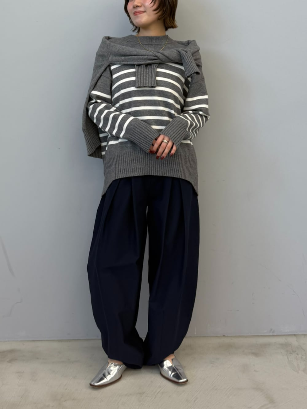 ECスタッフ(cross marcheメイン)のその他パンツ「《洗える》エブ楽 ジャージータックコクーンパンツ【CROSS FUNCTION/クロスファンクション】」を使ったコーディネート