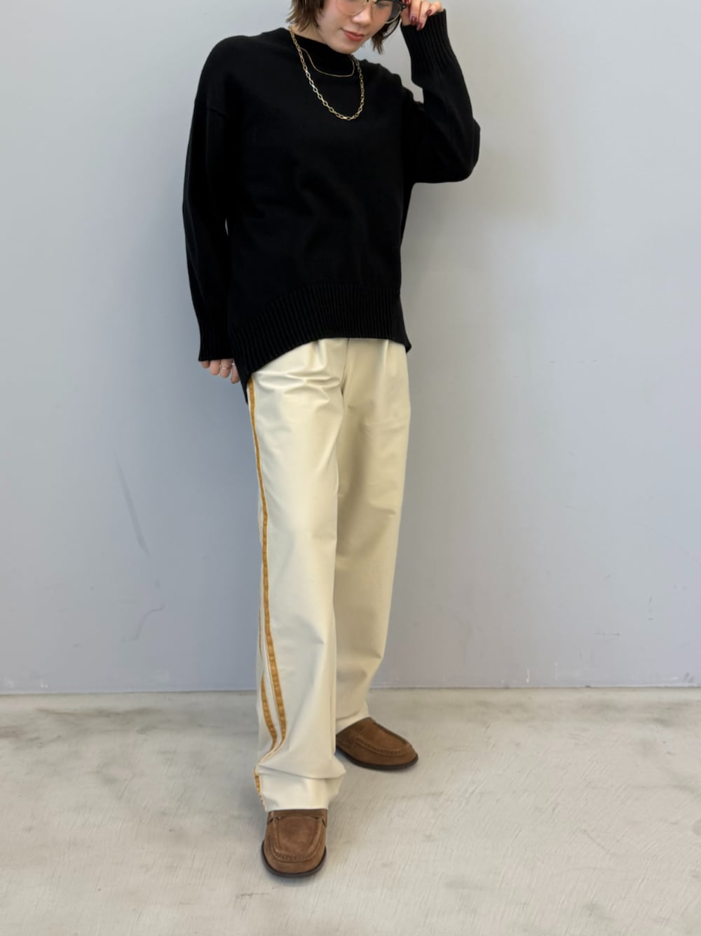 ECスタッフ(cross marcheメイン)のニット/セーター「洗えるバックスリットニット【CROSS FUNCTION/クロスファンクション】」を使ったコーディネート