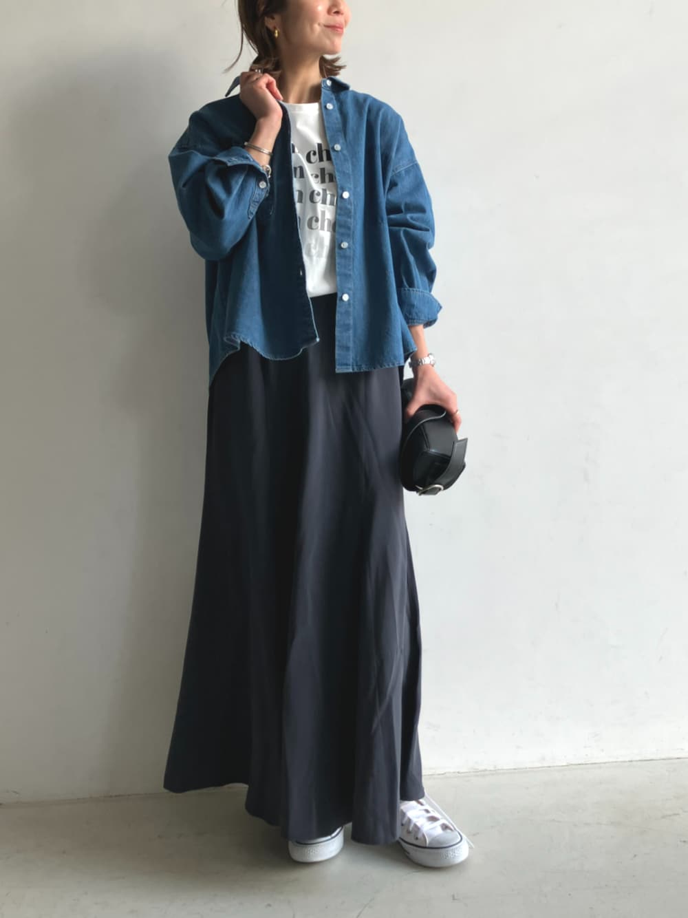 ECスタッフ(cross marcheメイン)のスカート「《接触冷感》サマ美え とろみフレアマーメードスカート【CROSS FUNCTION/クロスファンクション】」を使ったコーディネート