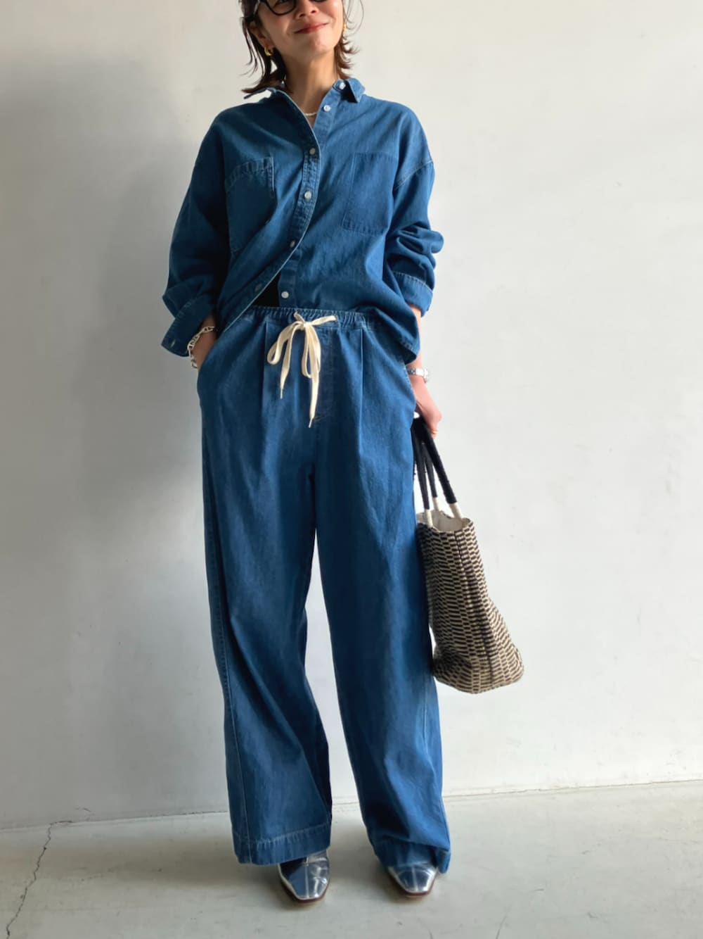 ECスタッフ(cross marcheメイン)のシャツ/ブラウス「《撥水》FRESH DENIM ポケットデザインデニムシャツ【CROSS FUNCTION/クロスファンクション】」を使ったコーディネート