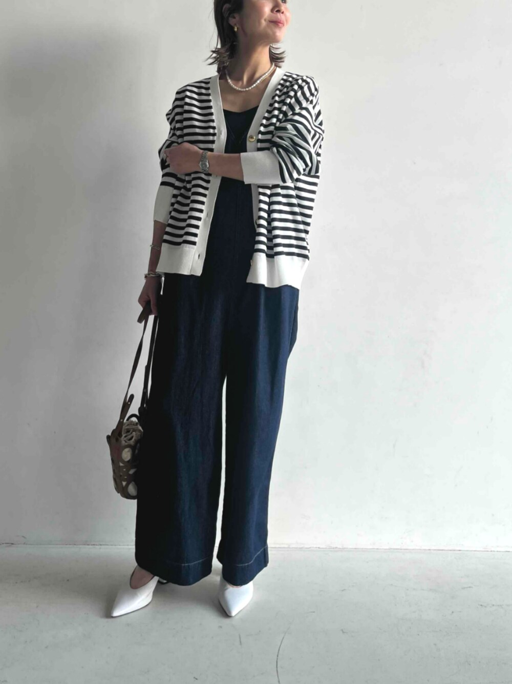 ECスタッフ(cross marcheメイン)のつなぎ/オールインワン「《撥水》FRESH DENIM デニムルーズオールインワン【CROSS FUNCTION/クロスファンクション】」を使ったコーディネート