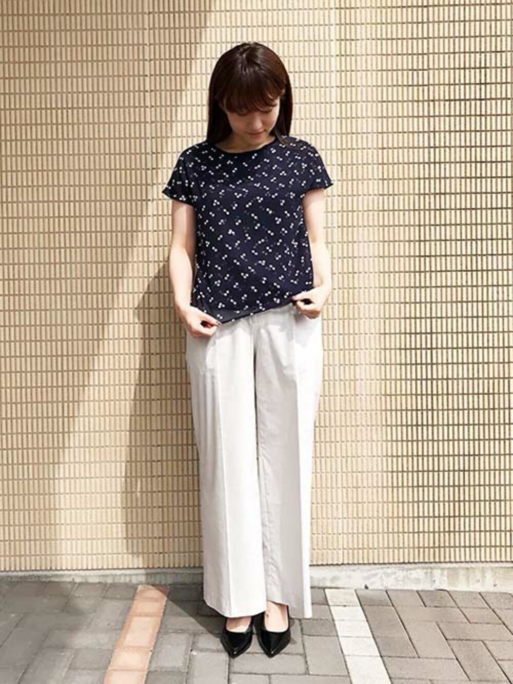 テーマ『迷ったら原点に返ろう』 毎日何を着たらいいかが分からないなら、 シンプルイズベストに戻ろう! カットソーの上にシフォンを重ねたブラウスは柄が3Dに見えます。 一枚で着ても決まりますし、ジャケットやカーディガンの中でも華やかです。 リネン入りのワイドパンツはシワになりにくく、 長い時間座っていても楽です。