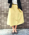 テーマ『カラースカートは同色コーデがオススメ』 トレンドのミモレ丈のカラースカートは 初夏らしいイエローを選んだ。 白トップスで作る無難コーデよりも 黄色の小花が散りばめられたブラウスをチョイス。 押さえとしてカジュアルにデニムジャケットを羽織ってもいいし、 カーディガンでエレガントし仕上げても大丈夫。