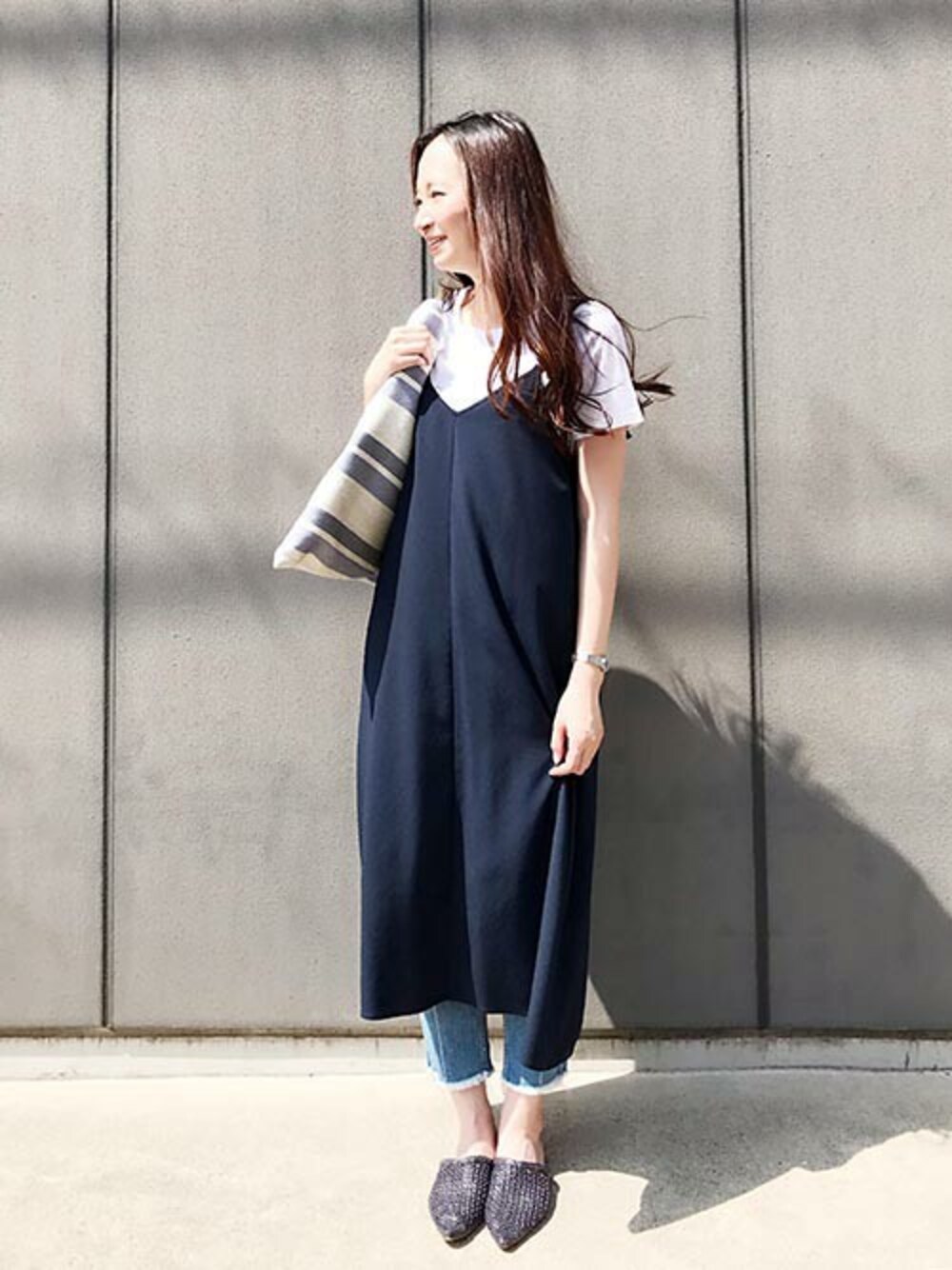 テーマ『キャミワンピ』 人気急上昇中のキャミワンピースは やっぱりデニム合わせが可愛い! Tシャツ×デニムの永久不滅コーデに キャミワンピを重ねるだけで今年顔に! ワイドパンツをこよなく愛するスタッフは ワイドデニムと合わせていました。 意外と好バランス!