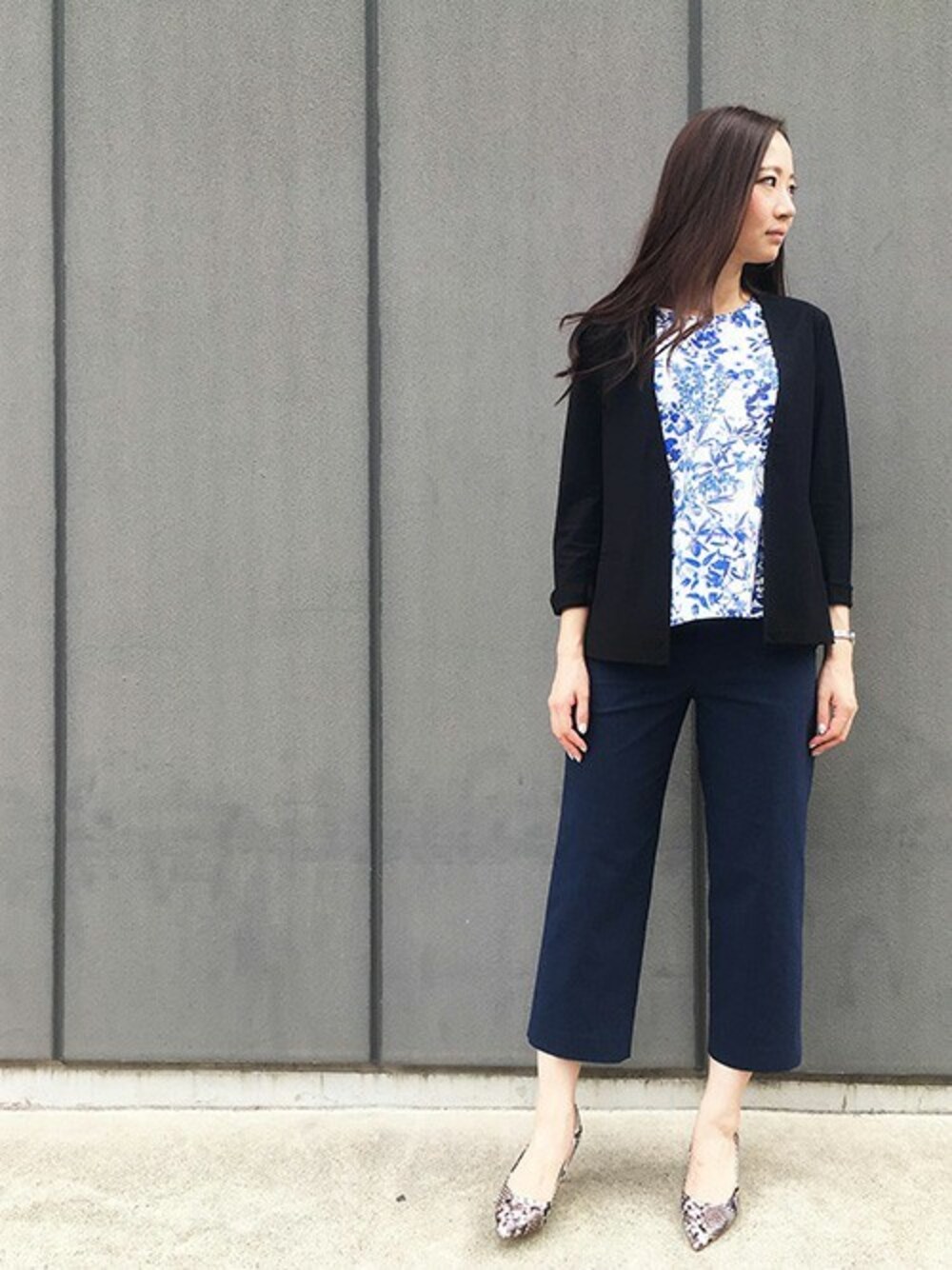 テーマ『夏の仕事着』 着回しが効くジャケットはカットソー素材で 心地良く羽織って頂けます。 インナーのボタニカルブラウスはノースリーブで ごわごわしません。 ワイドシルエットのパンツは麻入りではき心地良く、 美シルエットなのがポイントです。 暑い夏だからこそ、クールに魅せたいですね!