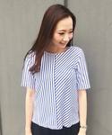 CROSSPLUS(CROSSPLUS ONLINEメイン)のTシャツ/カットソー「【COOLER TOUCHシリーズ】ストライプ切替プルオーバー」を使ったコーディネート