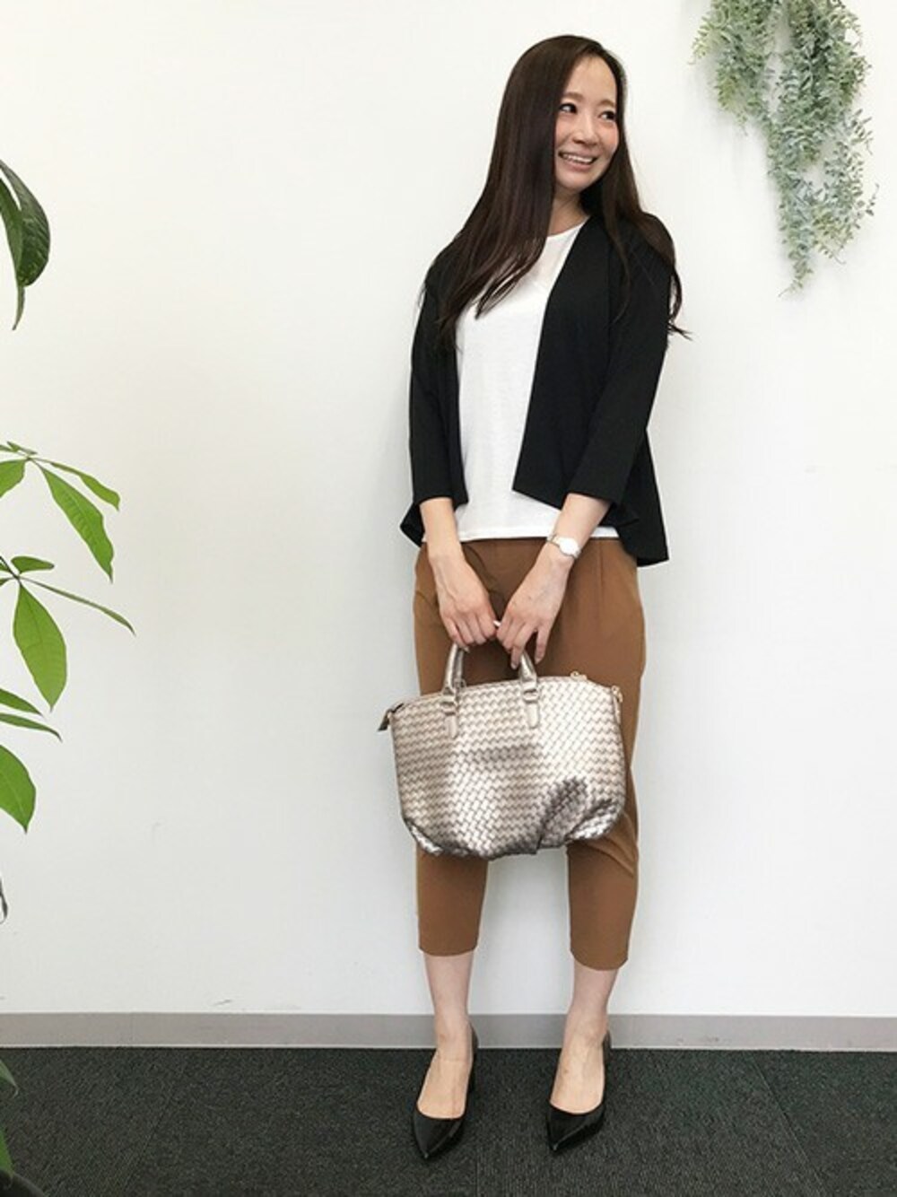 CROSSPLUS(CROSSPLUS ONLINEメイン)のカーディガン/ボレロ「【WASHABLEシリーズ】ボレロカーディガン」を使ったコーディネート
