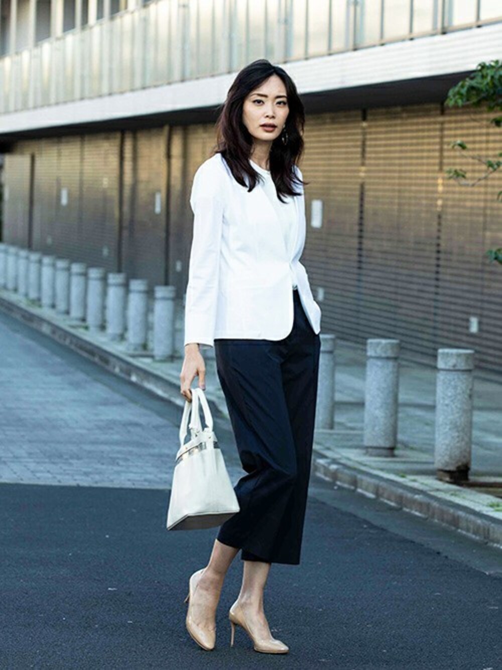 テーマ『ホワイトジャケットを着こなせる女になりたい』 一枚は持っていたいって思っても、 着こなしのハードルが高い。 カットソー素材でサラリとした着心地のジャケットは パリッとした印象がないので、 初心者でも挑戦しやすい。 いつかホワイトジャケットでオフィス街や 学校を闊歩したい。