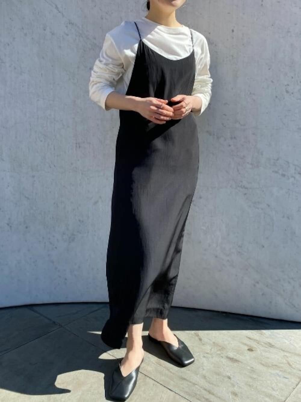 イージーケアなシルクタッチのサテンキャミワンピ 繊細なシルクタッチの素材が艶やかに肌をすべるサテンキャミワンピ。 ストンと落ちるストレートラインのシルエットでTシャツやタンクトップなどと合わせてカジュアルに着こなしたい1枚です。 裏地がついているのでインナーの透けも気になりません。両サイドにはポケット付き。 上品見えする素材ながら、自宅で手洗いが可能なイージーケアも、これからの季節、大きな魅力の一つ。
